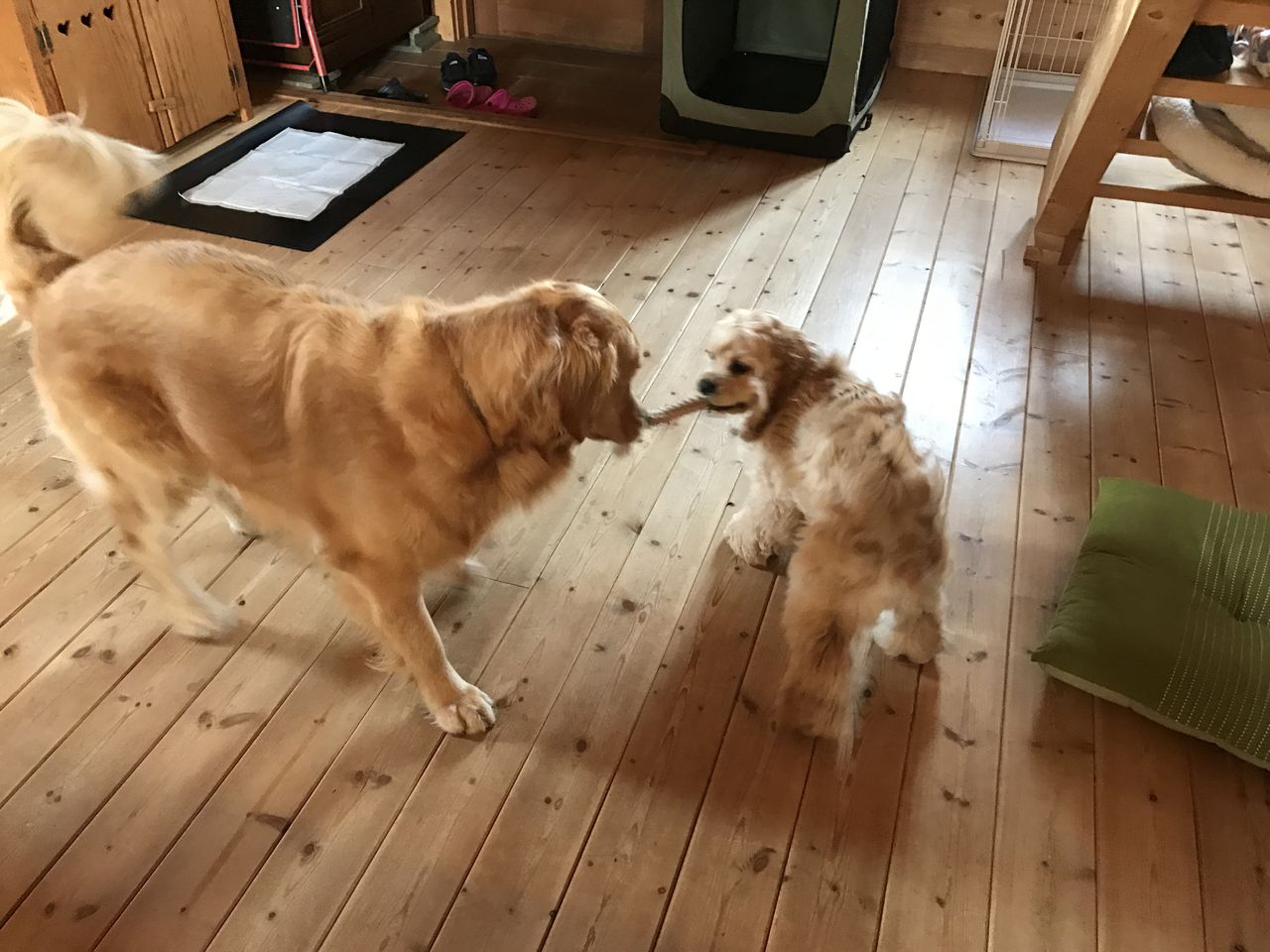 デニィが散歩から戻ると、福ちゃんはデニィにベッタリ♡