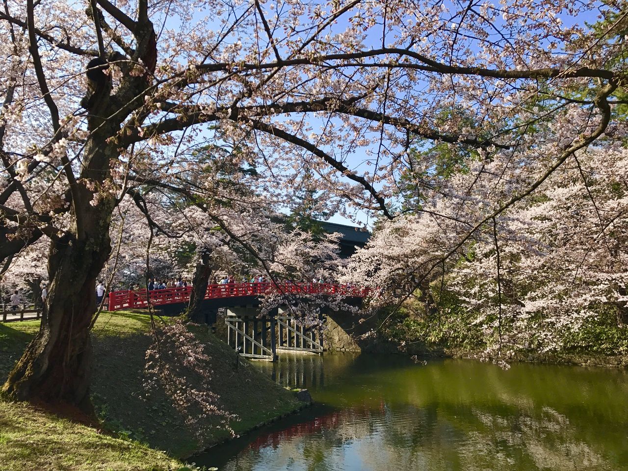 気温がぐんぐん上がった弘前公園の桜は、ちょうど見頃でした。