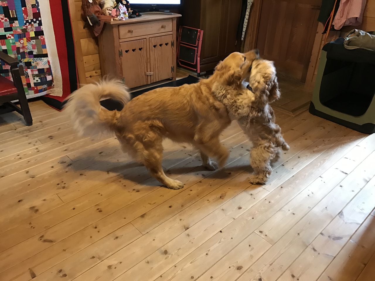 デニィが、階段からオモチャを持ってきて、