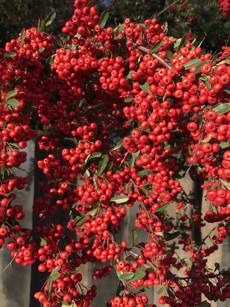 ほとんどの木が葉を落とした中、空港ターミナルビルの入口のピラカンサスが見事!!