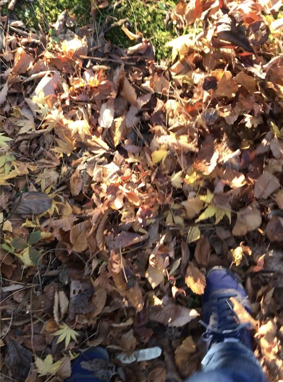 雑木林のフカフカの土の上を歩くと、山の中を思い出しました。