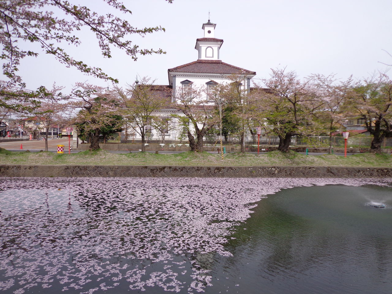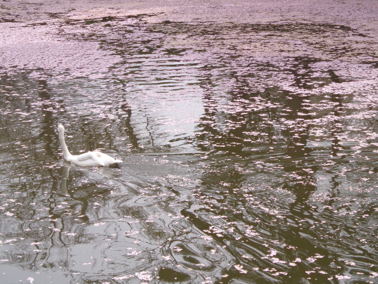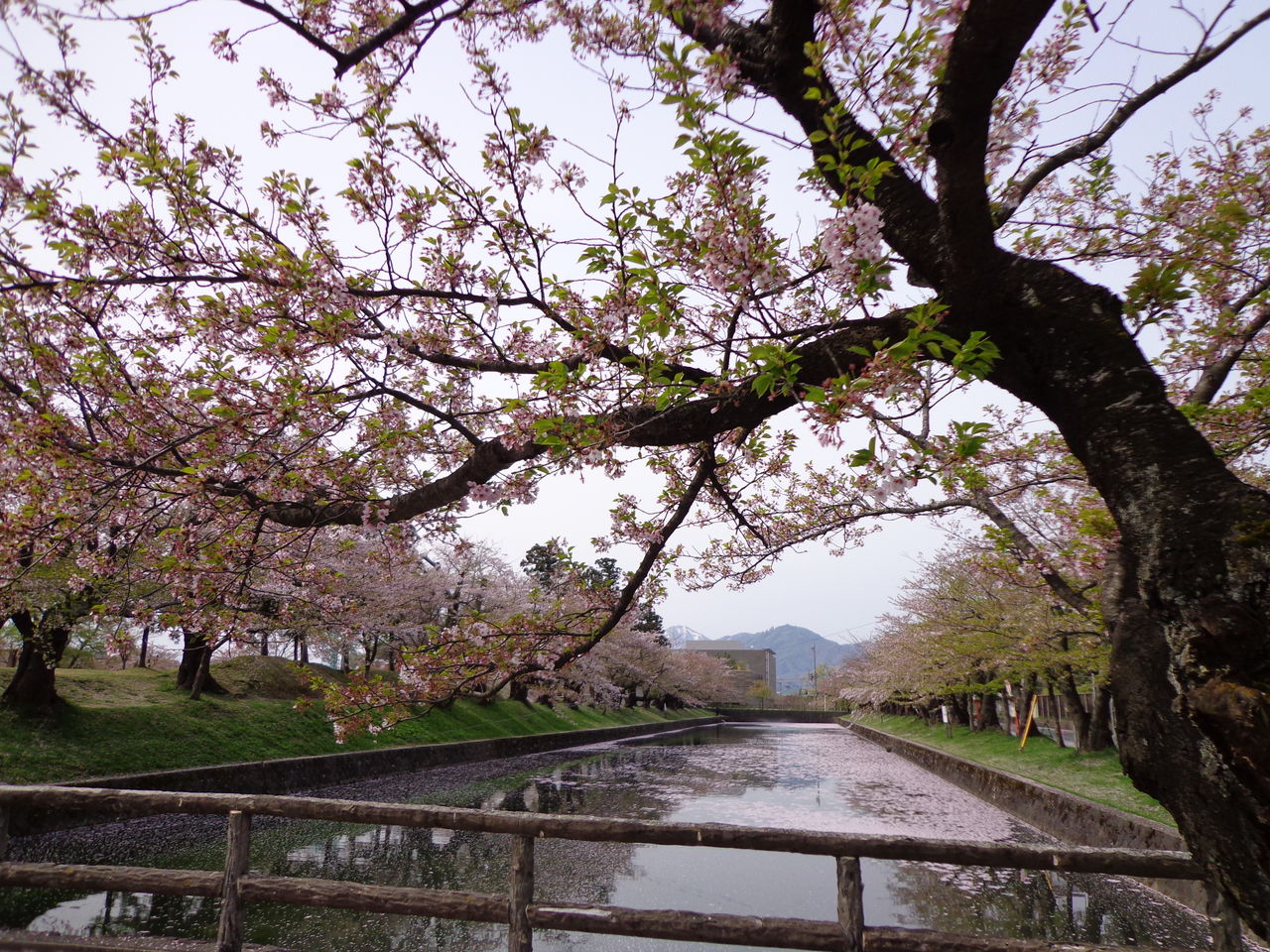 もう、散ってる途中でしたが、その花びらが、お濠に浮かんでピンクになって、