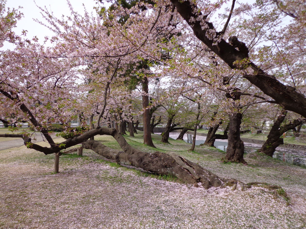 この桜の木は、倒れても尚、根を張って、毎年きれいな花を咲かせます。