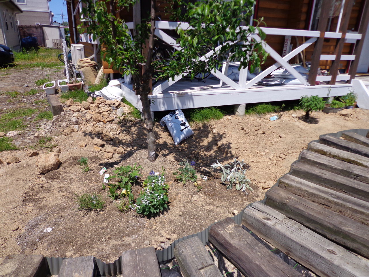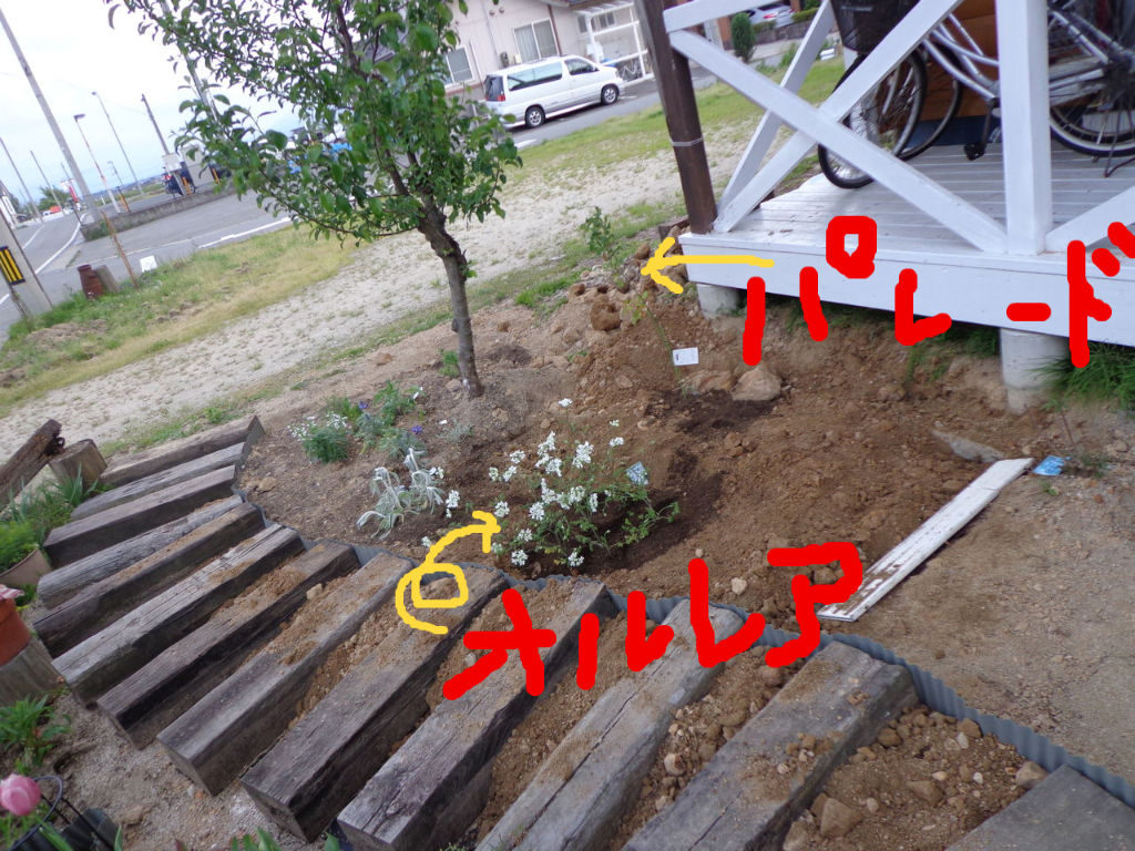 今まであったラムズイヤーやわすれな草を移植しました。