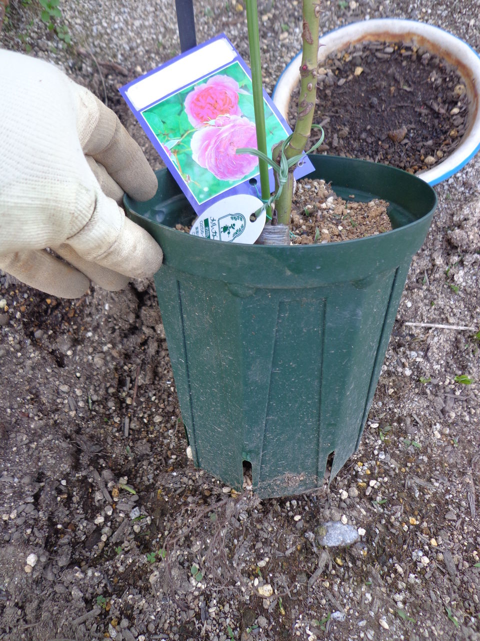 この、去年買ったパレードというピンクのバラを植えました。