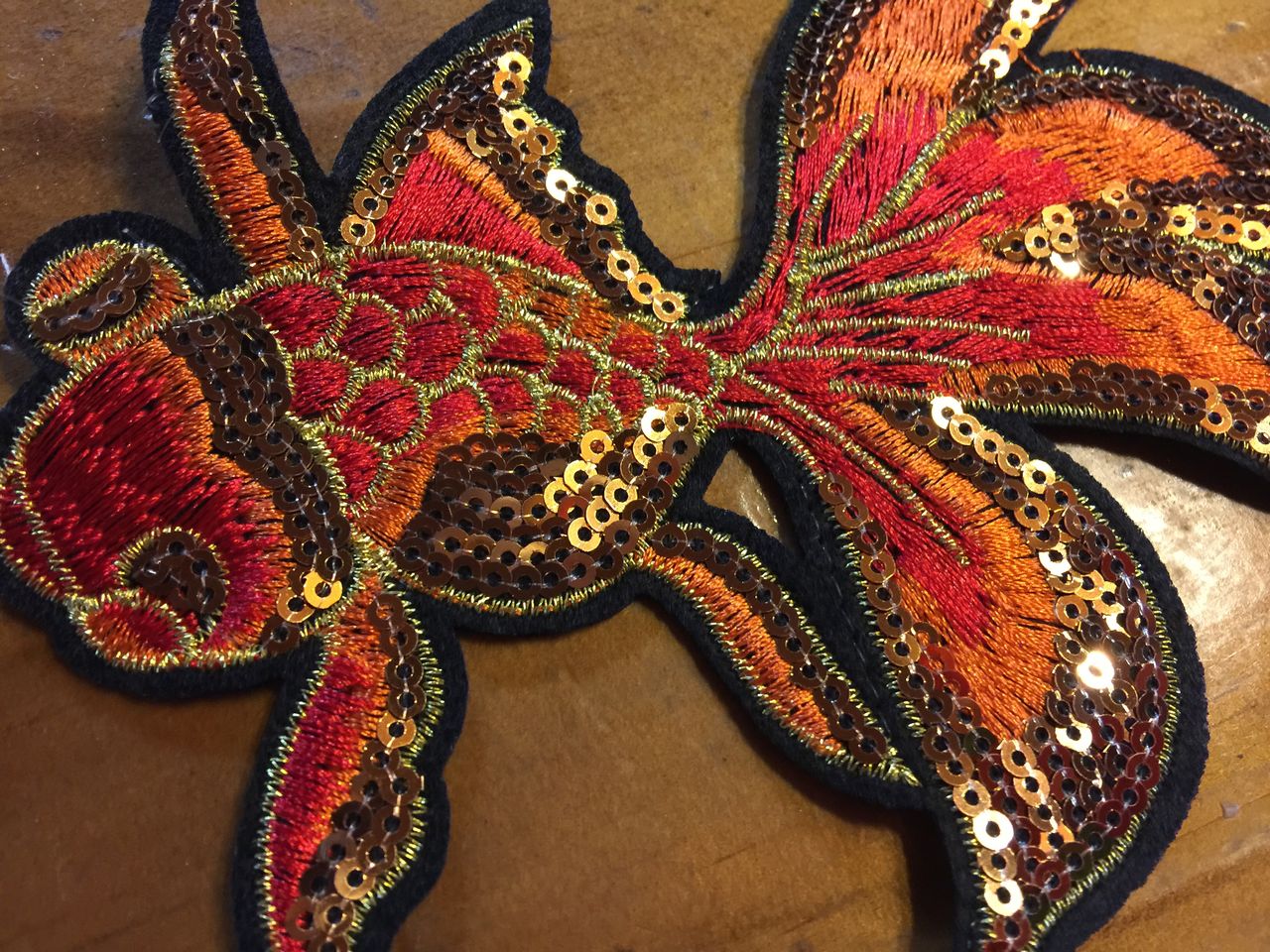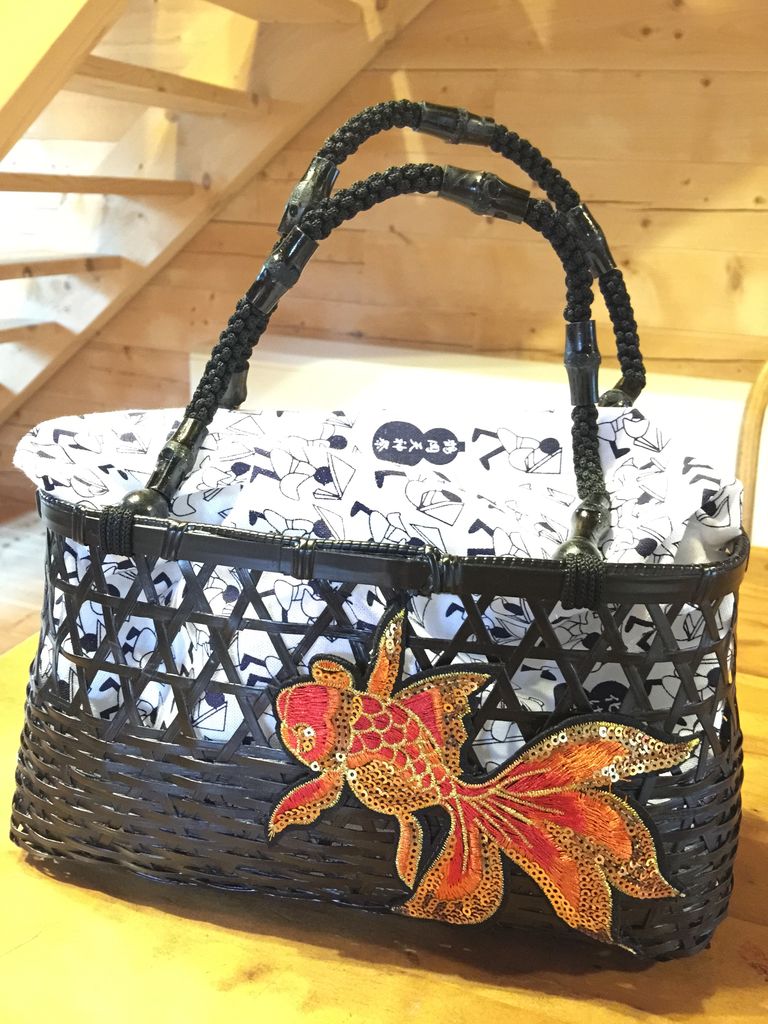 キラキラ金魚のワッペンを使いたかったから、この黒いバッグを選んだんです(^-^)